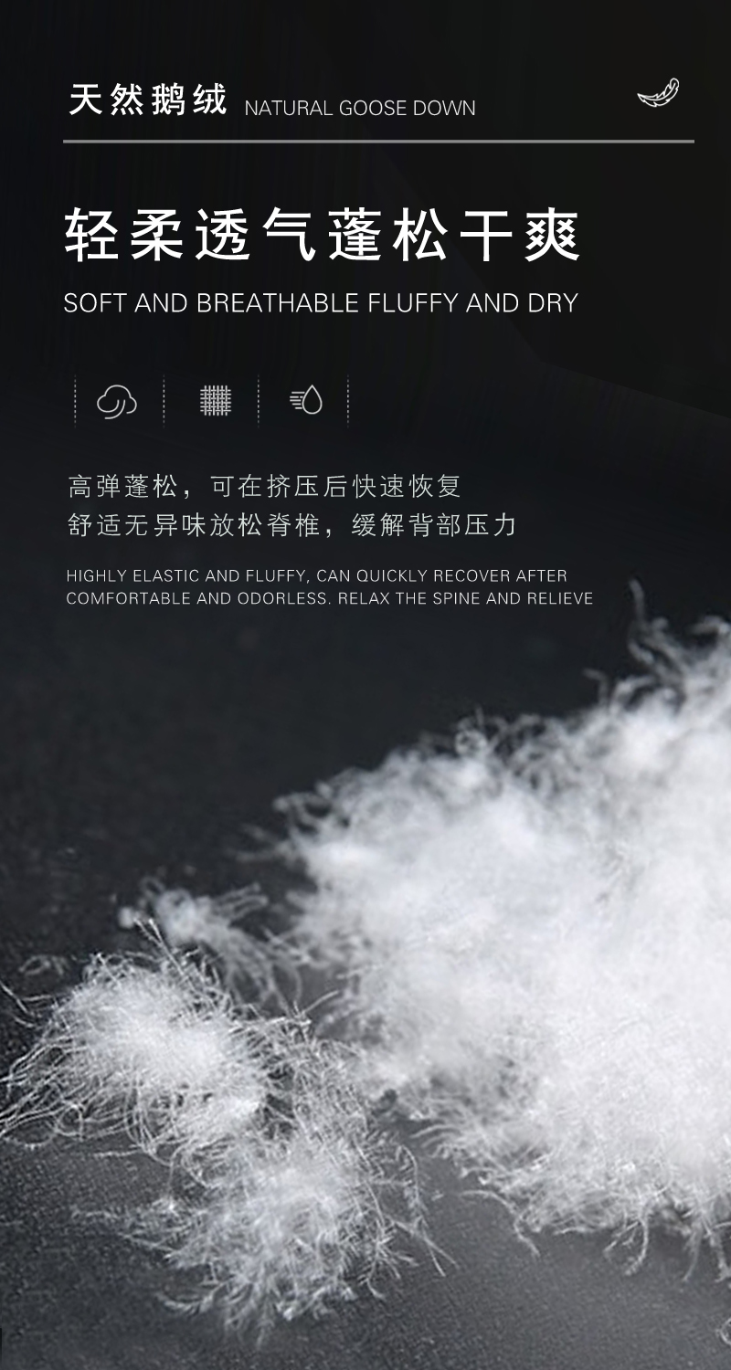填充物: 高密度海绵 ,天然鹅绒 ,高回弹海绵High-density sponge ,Natural goose down ,High rebound sponge