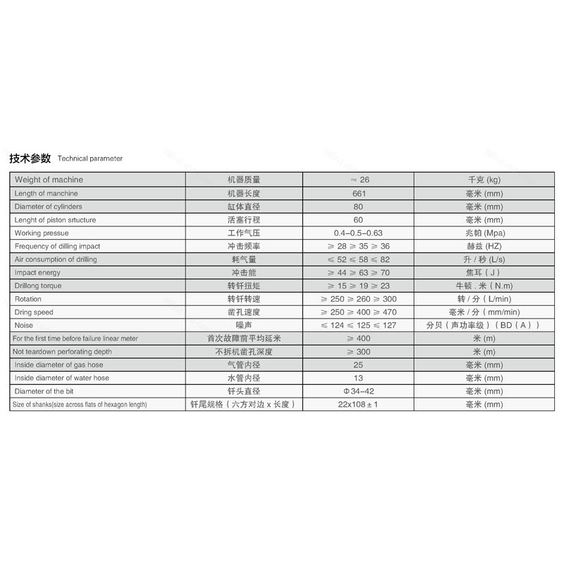 ◆YT28G型凿岩机是国内首屈一指的凿岩工具。它重量轻、凿速快、故 障率低、可靠性高,深受用户欢迎。