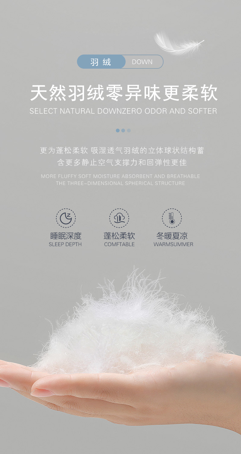 羽毛在羽绒制品中轻盈飘逸