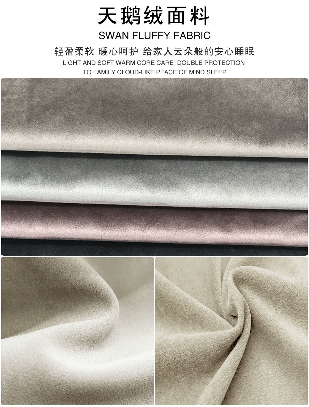 面料: 天鹅绒面料 ,冰丝面料Velvet fabric ,Artificial cotton fabric
