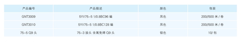 产品描述:执行标准:GT/T14864-1993;适用范围:用于视频领域,通信系统及信号控制系统,用于视频监控线路,广播信号控制、公共电视天线、闭路电视监控系统,用于无线电通讯,传输系统及单位控制或是高频率机器内部配线。特阻抗性:75Ω:内导体:单支或多支裸铜线绞合