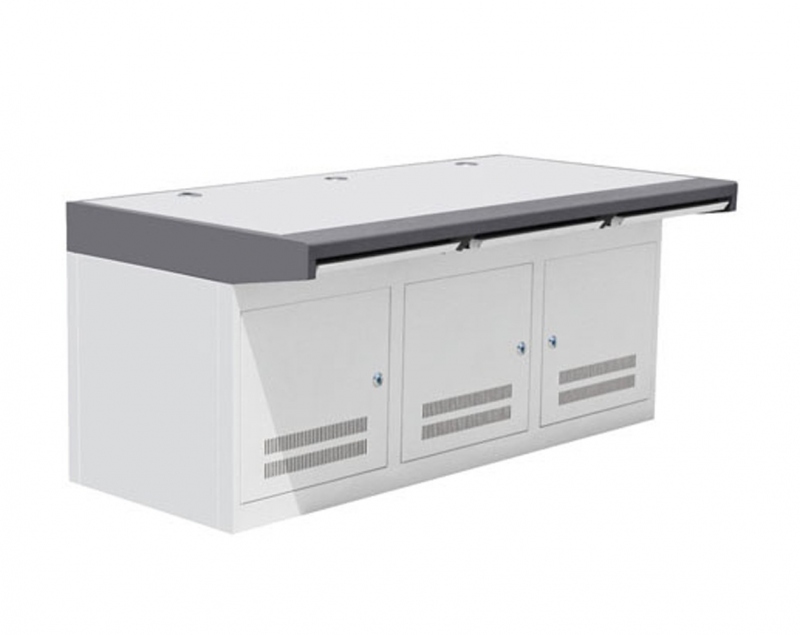 底部为设备柜,可放置网络设备、电信设备、视频处理设备、监控控制器等标准19”或非标19”设备。后下部多个进线孔,让错综复杂的线缆变得有条不紊。