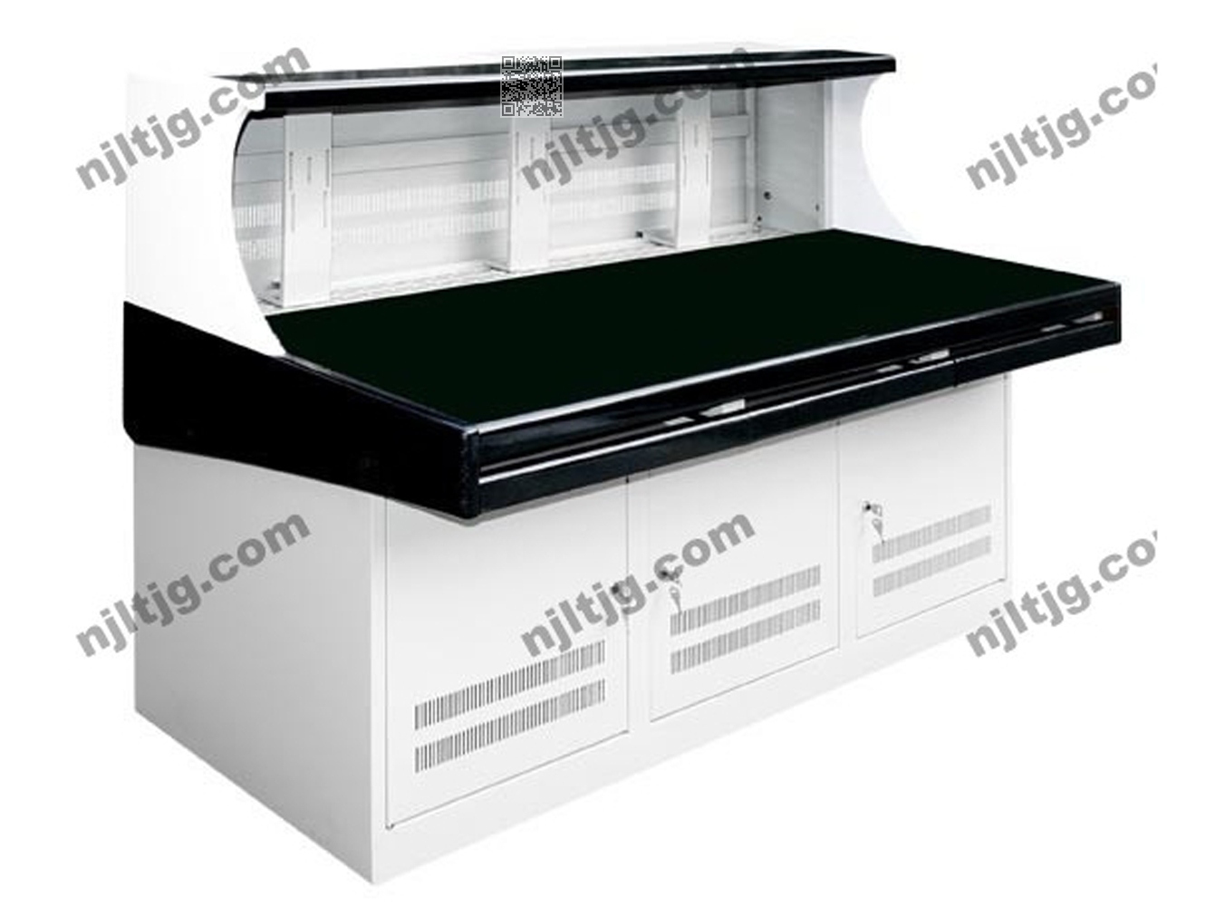 有利于操作员在长时间目视画面时眼睛不疲劳;适合操作员在坐姿操作时双腿能伸入台面下部且不会因为碰到柜体而伤到腿;主框架选用优质冷轧钢板,扶手及侧邦可选中密度板自然木或金属漆饰面,色彩丰富,创先的设计,的功能,使用户在使用时更加方便。