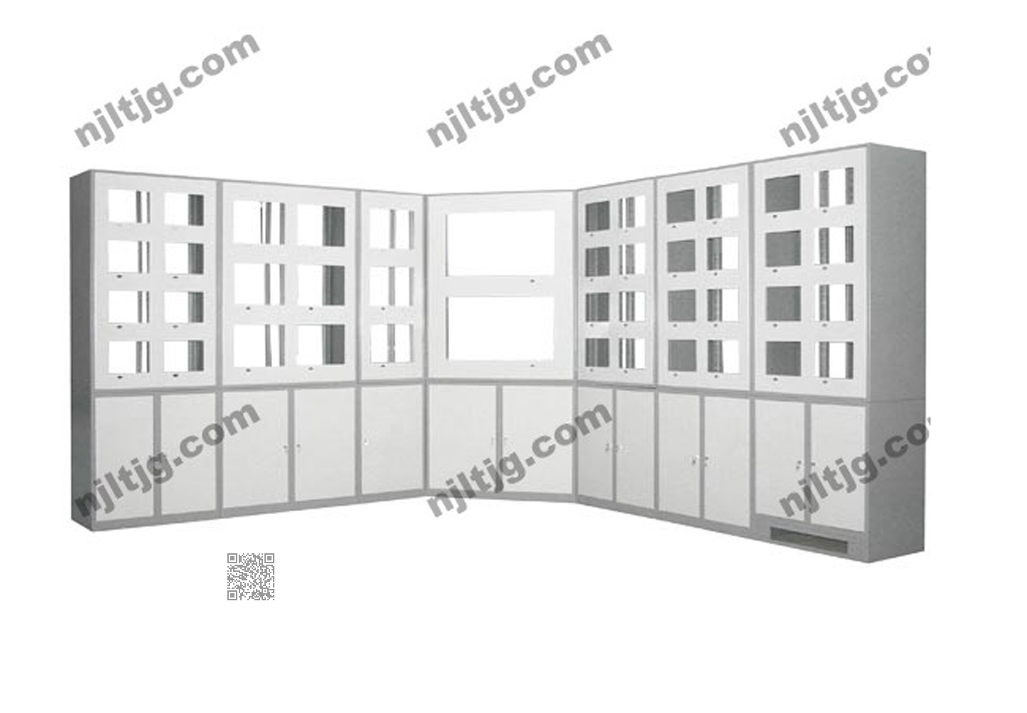 底部为设备柜,可放置网络设备、电信设备、视频处理设备、监控控制器等标准19”或非标19”设备。后下部多个进线孔,让错综复杂的线缆变得有条不紊。
