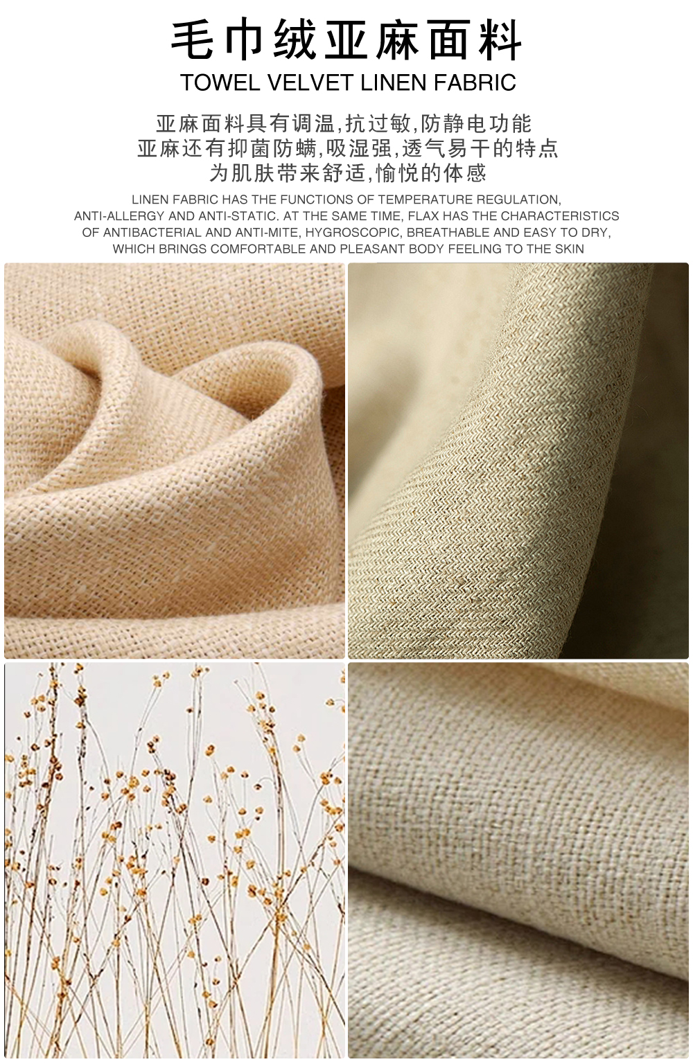 材质: 毛巾绒亚麻面料