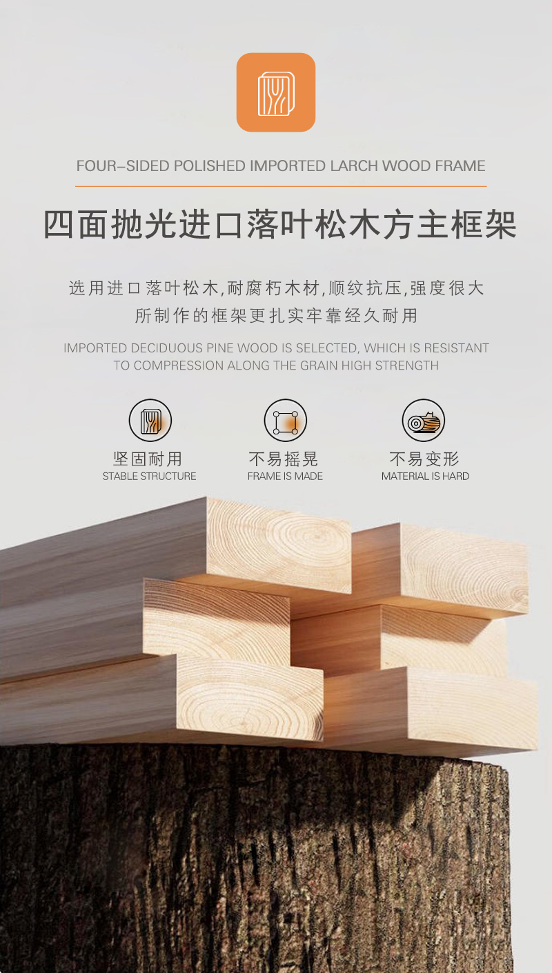 Four-sided polished imported larch wood square main frame